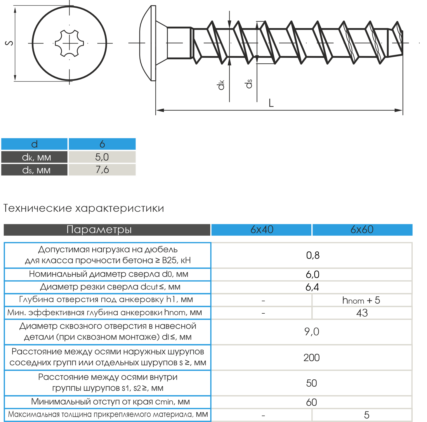 Анкерный шуруп по бетону с заниженной сферической головкой, для монтажа в бетонное основание с цинк-ламельным покрытием. Привод ТХ30.